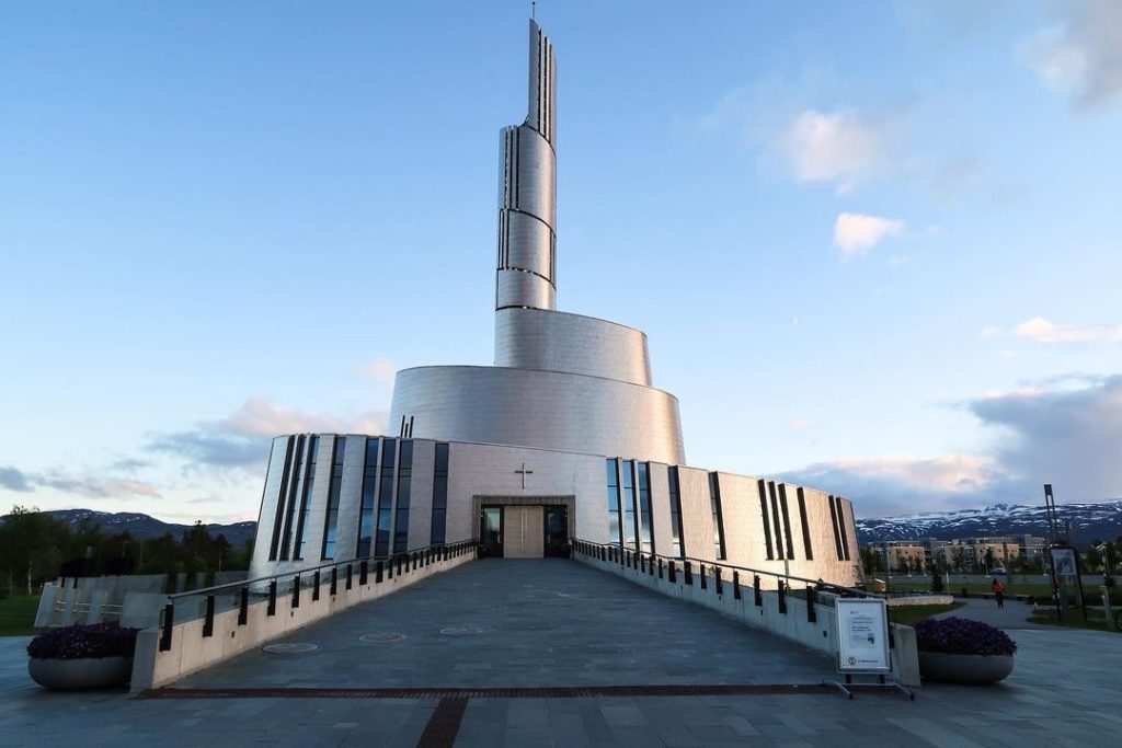 Nordlyset var en av inspirasjonskildene under byggingen og fra alle vinklene kan man se buktende bølger slik nordlyset ofte opptrer. Det måtte bare bli en nordlyskatedral i nordlysbyen.