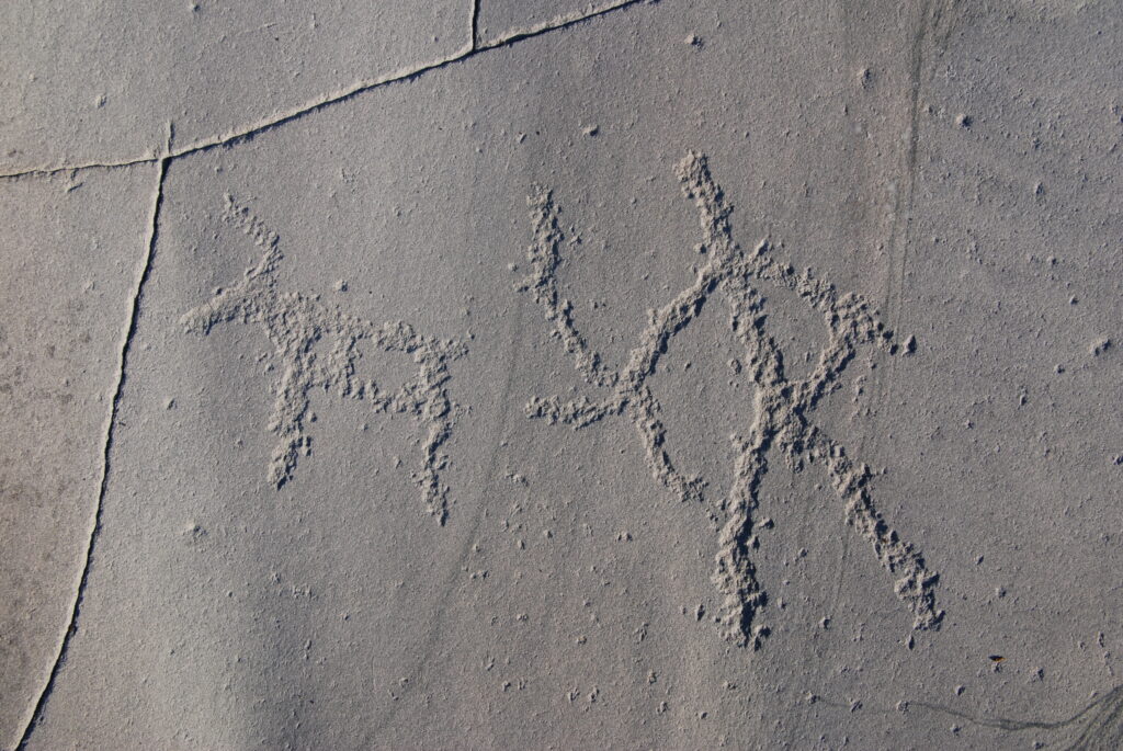 When the rock carvings were rediscovered in the 1970s, there was a desire to make the figures more visible to the public. At the time, it was common practice to highlight rock carvings with red paint so the motifs could be more easily seen. This made it easier to convey the stories carved into the rock – stories of hunting, rituals, everyday life and interaction with nature.