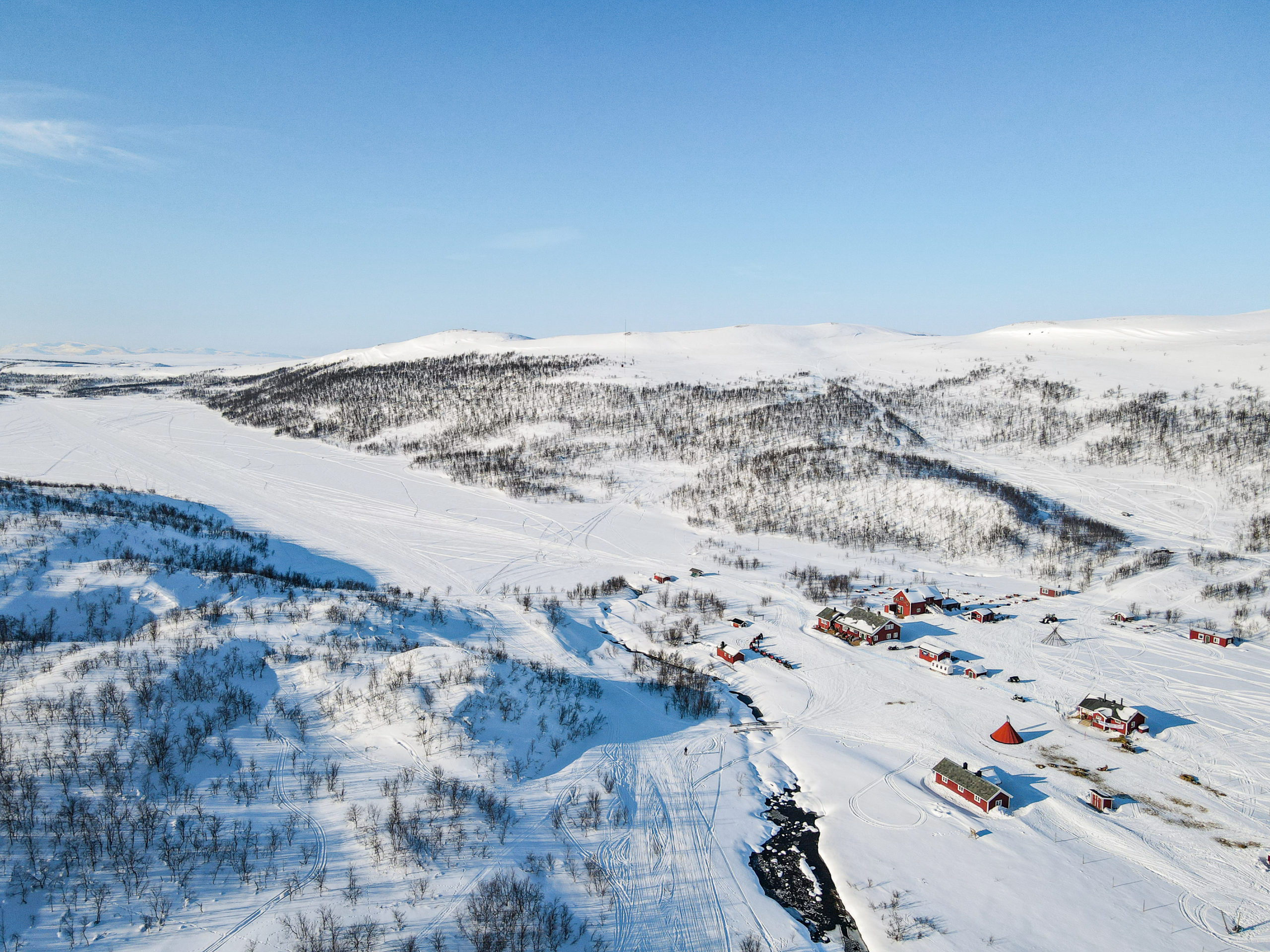 We start this tour from Sorrisniva, which is a 20-minute drive from the center of Alta. The trail we drive follows the old trading road in the direction of Karasjok.