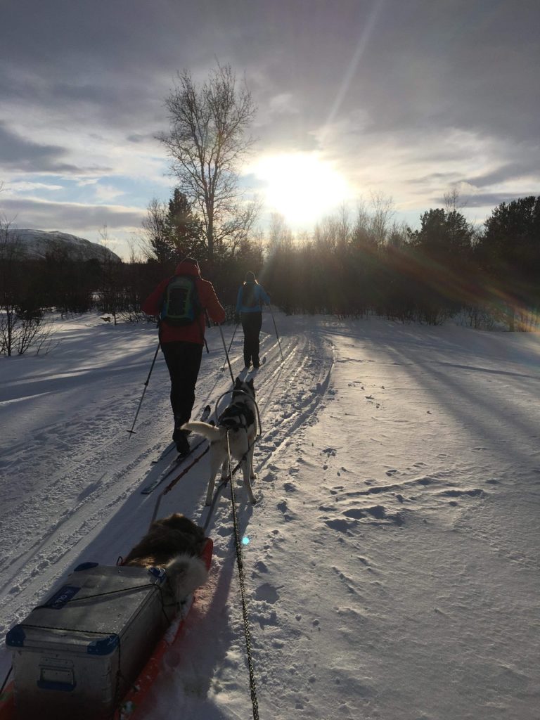 The slightly longer trip (4,5h) will focus on great nature experiences and we choose the terrain and tracks based on what skill level you are at. This means that we can both cross the forest boarder and get a taste of the Finnmarksvidda or stay down in the pine forest. There is plenty of different track opportunities in Alta so we can choose the best ones for your trip. We will on this trip also stop to make a campfire where we eat our lunch and a good cup of coffee.