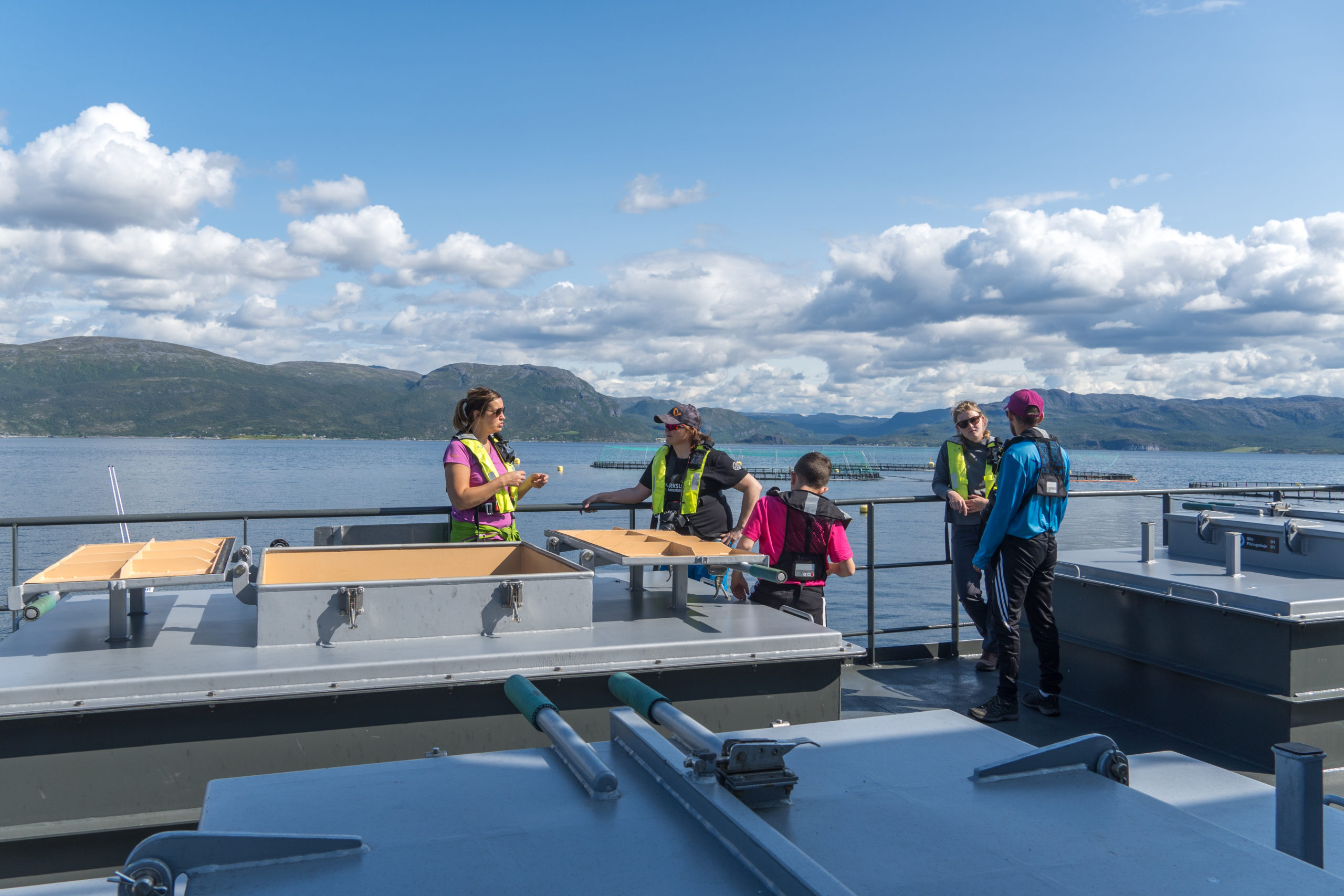 The boat trip starts from Alta Harbour and takes about 30 min each way. The tour goes through a beautiful coastal landscape before we arrive at the fish farm Mortensnes, where our experienced guides will show you around and explain to you how the fish farm works.