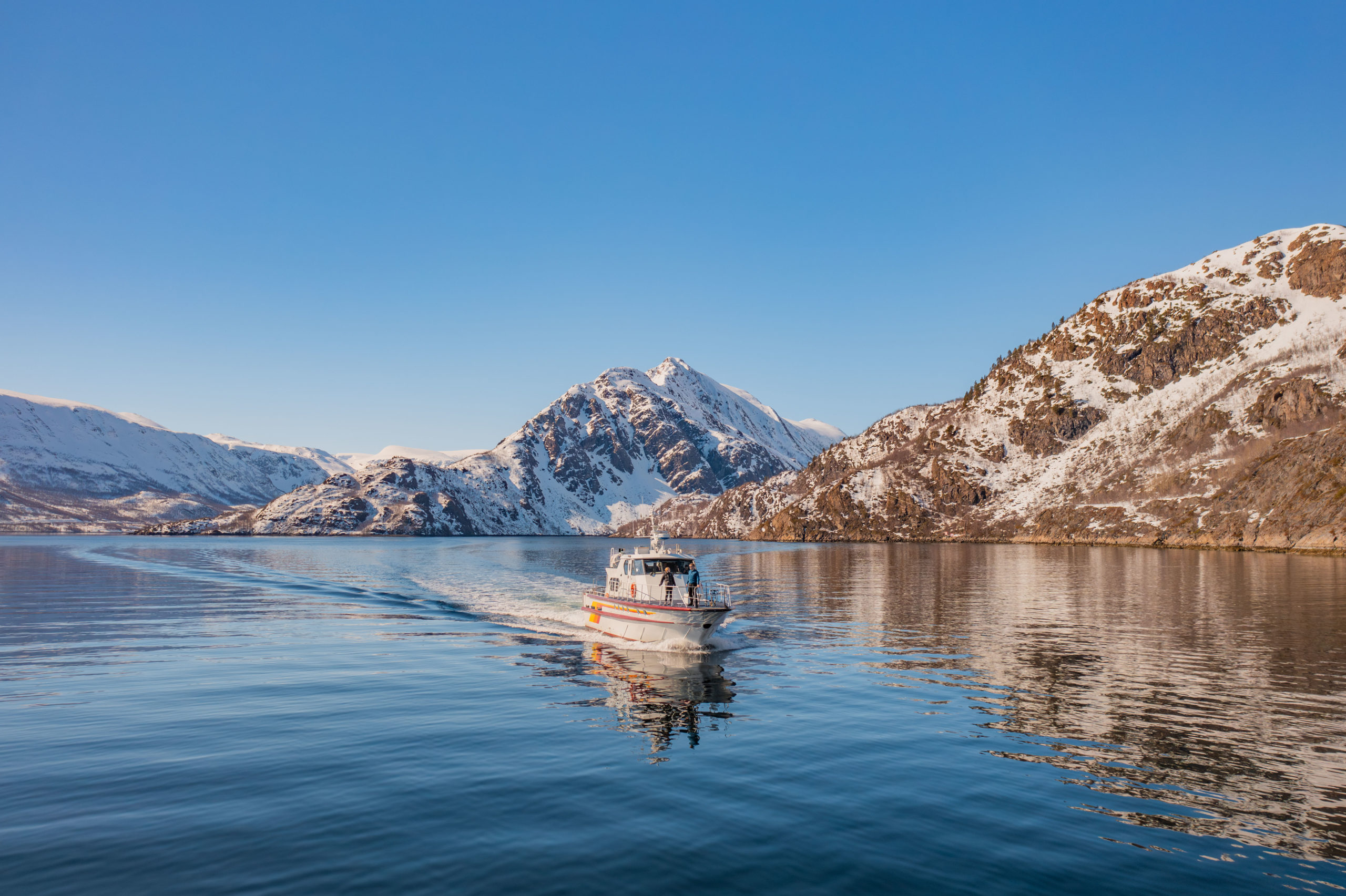 Legg ut på vår fiskevær-tur, med start fra Alta havn. Gå ombord på Sea Runner, mens vi legger ut på vår reise, glir gjennom det rolige vannet i Altafjorden, nyt den fantastiske utsikten over den forrevne kystlinjen og de imponerende fjellene som omgir oss. Skipet vårt tilbyr moderne bekvemmeligheter som toalett, presentasjonsskjermer og gratis WiFi-tilgang, noe som sikrer en komfortabel reise for alle passasjerer. Mens du slapper av i de oppvarmede innendørssetene eller nyter den friske fjellbrisen på utedekket vårt, hold øynene åpne for potensielle dyrelivsobservasjoner som ørner som pryder himmelen eller seler som slapper av langs kysten. Guiden vår vil også dele historier om lokale landemerker, og berike reisen din gjennom disse fantastiske sommerfjellene.