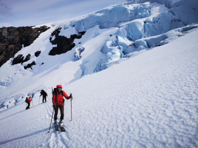 Inngangen til breen er på 800 meters høyde og vi går inn på breen som et taulag. Du vil bli introdusert for bruk av stegjern, isøks og hvordan du kan være medlem av et taulag. Og dersom tiden er tilstede og forholdene tillater det, vil du også få muligheten til å drive med litt isklatring.