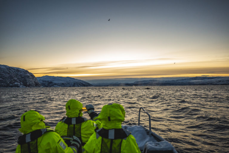 Denne turen kombinerer både fjord- og hvalsafari. Den mest vanlige hvalarten er knølhval, men også spekkhogger er det mulig å se. Du vil bli kledd i varme vinterdresser, men vi anbefaler at du kler deg godt med ullundertøy. Vi justerer startstedet med båt ut i fra hvor hvalene befinner seg. Dette kan innebære 1-2 timer i bil. Dette for å gi deg de beste sjansene for å se hval og for å gi deg en komfortabel og varm opplevelse. Du vil også få muligheten til å se annet dyreliv og få historier fra Altafjorden.
