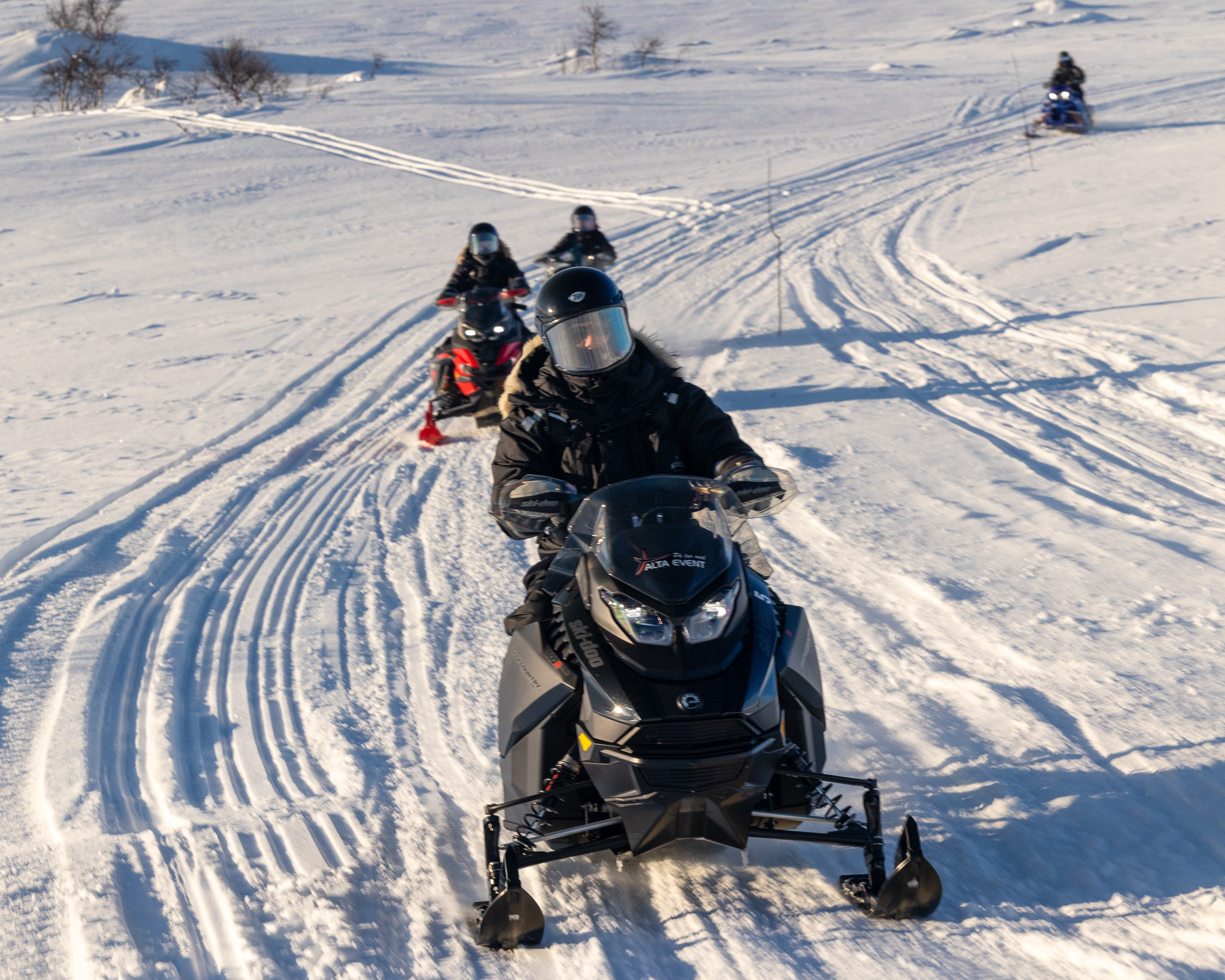 Bli med på en spektakulær snøscooter tur i området rundt vakre Alta.