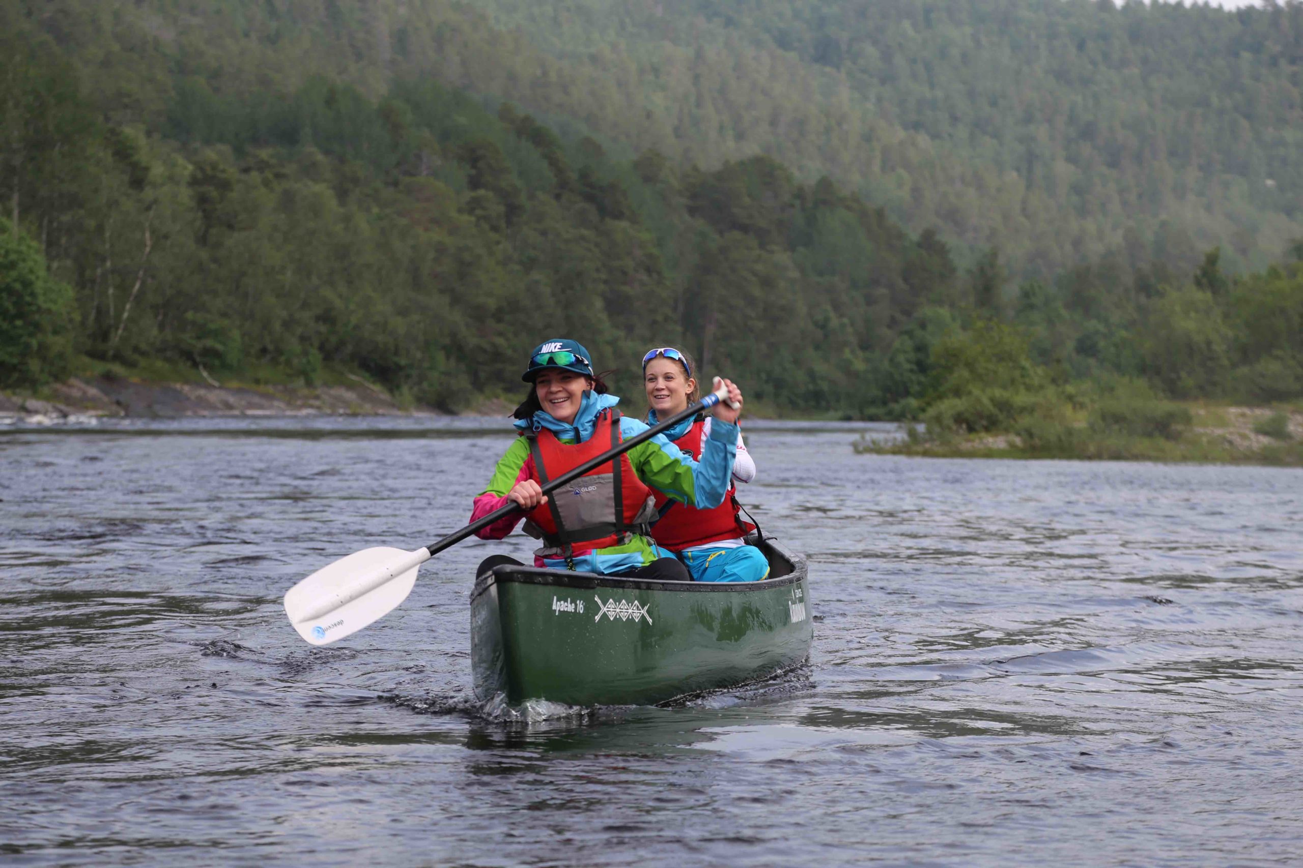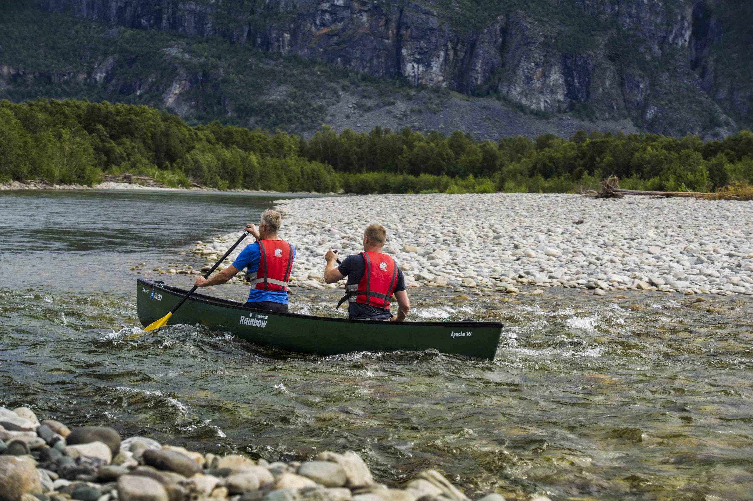 Kano er et effektivt fremkomstmiddel som gir både trim, rekreasjon og naturopplevelse – helt lyd- og sporløst! I laksefiskesesongen foregår kanoturene våre mellom hviletiden som er fra kl. 12.00-18.00, er vi heldige ser vi kanskje noen laksefiskere som avslutter fiskedøgnet sitt eller venter på å starte.