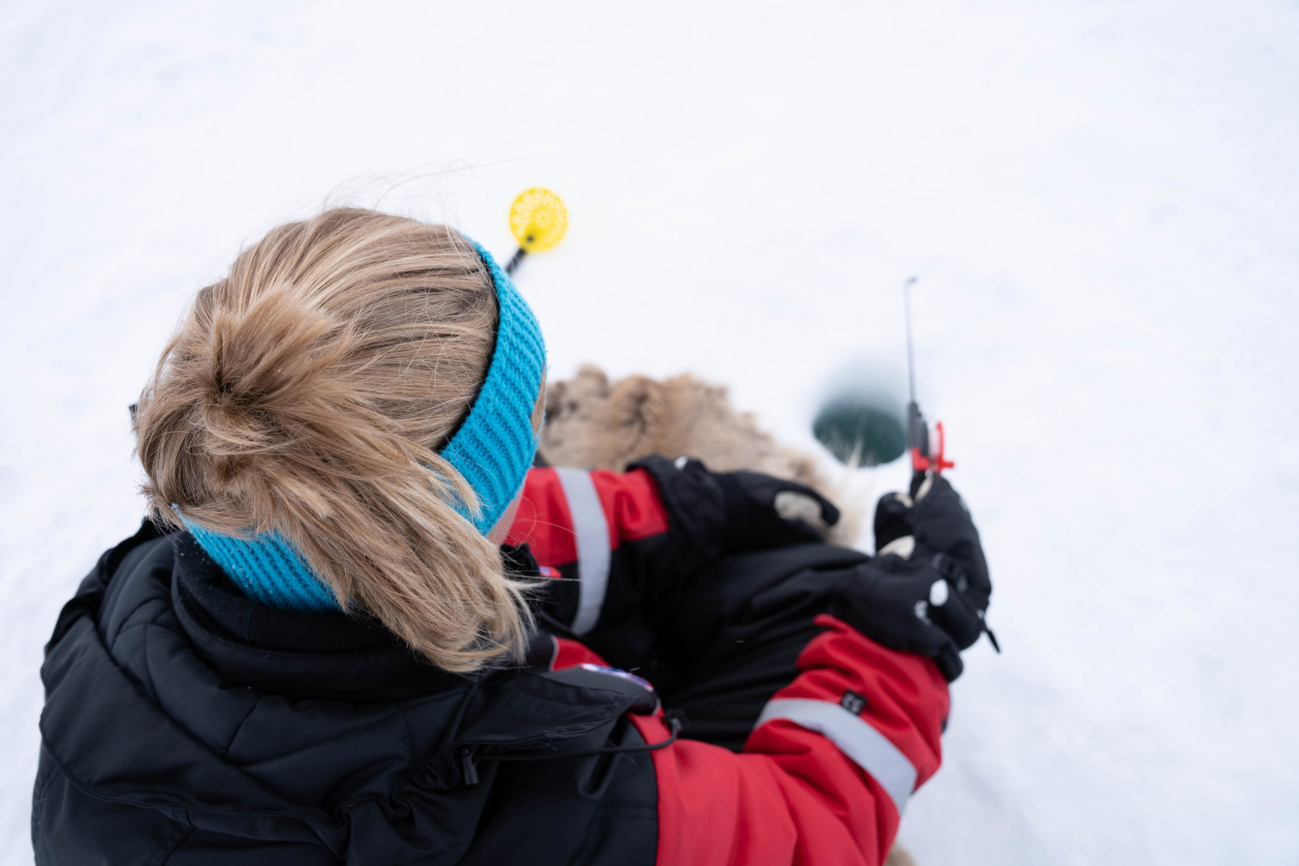 Gjennom snødekte skoger tar vi veien opp til de vidstrakte fjellplatåene. Her kan du omfavne den ekte arktiske villmarken, omgitt av ingenting annet enn snø og himmel i alle retninger. Når vi når det som føles som toppen av verden, fortsetter vi kjøringen mot fiskestedet. Her kan du lytte til den arktiske naturen og oppleve en stillhet som kun finnes i det ville. Samtidig tester du tålmodigheten din mens du venter på at fisken skal bite.