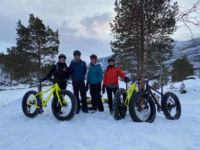 Vi arrangerer daglige fatbike turer i herlig natur på fine traseer som vi prepper hele vinteren, sommer og høst er det stier vi sykler på. Vi har med kaffekjele og god mat som vi lager på levende bål, vi stopper og tar lunsjen ute i det fri ved et fint vann. En slik tur passer for hele familien.