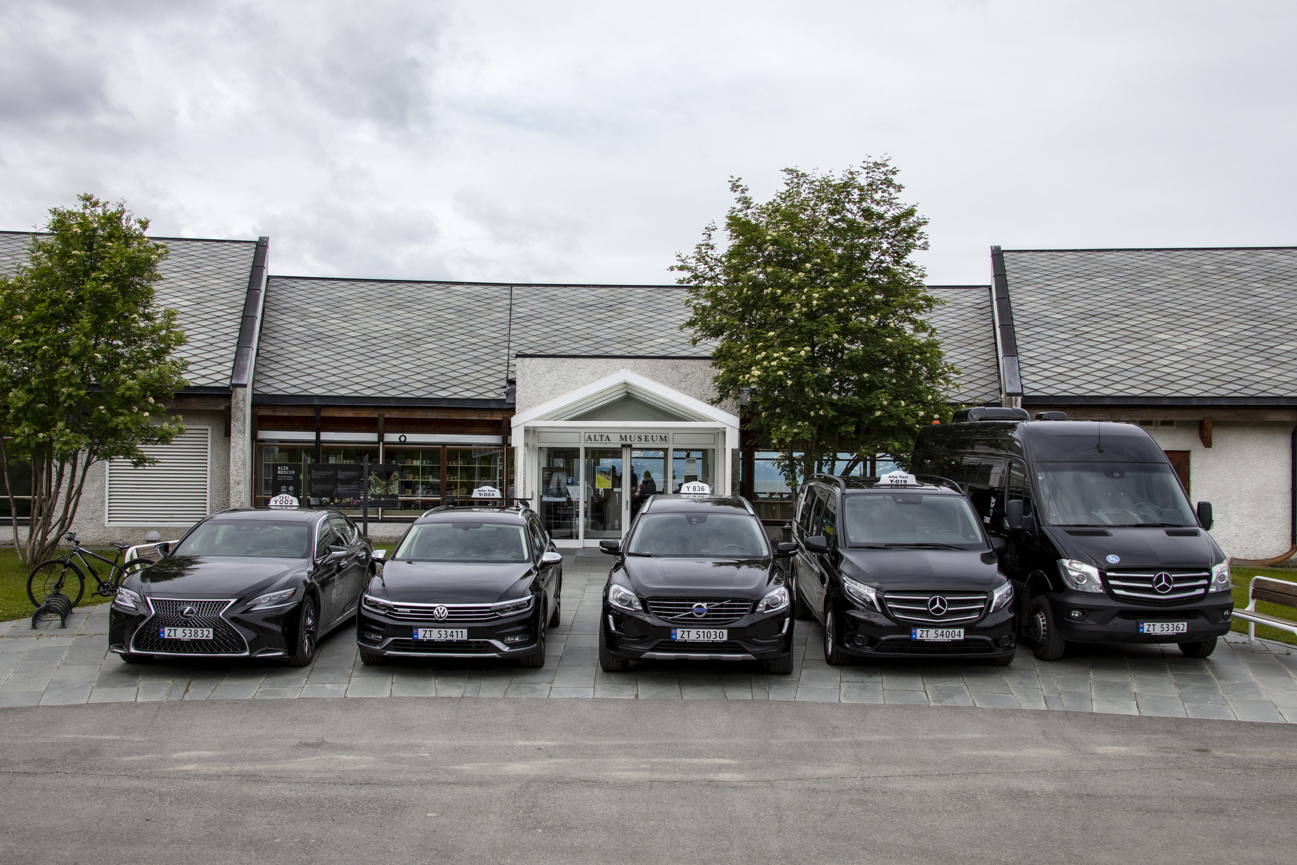 Alta Taxi AS administrerer en flåte på 24 biler, hvorav 3 er 16 seters minibusser som også er tilpasset rullestolbrukere.